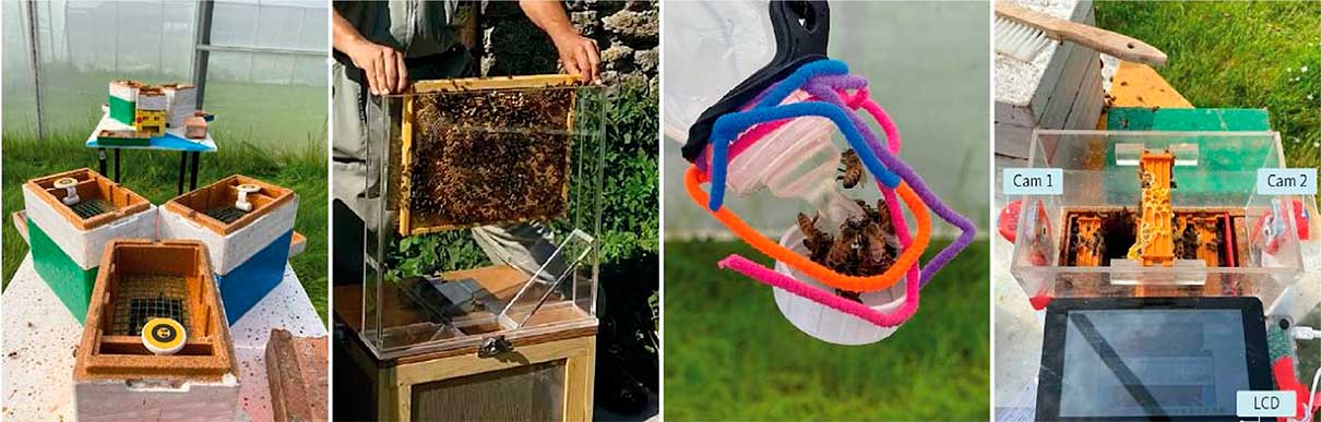 Immagini della sperimentazione alimentare sulle api. Foto: Gonçalves et al.