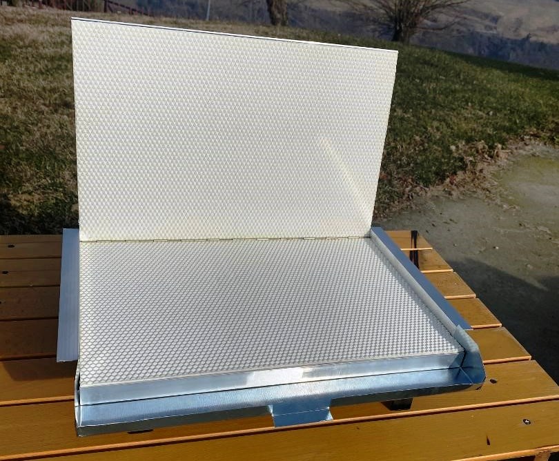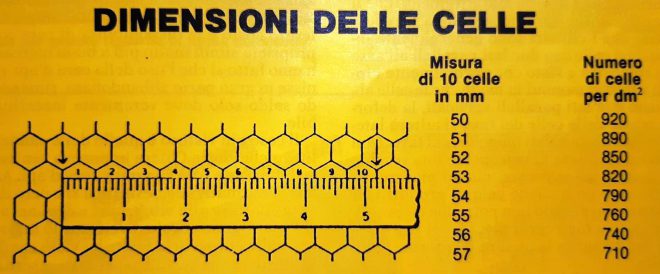 I pochi fogli di diversa provenienza commerciale che ho misurato, per pura curiosità, avevano tra le 820 e le 700 celle per dm2 senza che nessuna indicazione specifica li accompagnasse. Inoltre i fogli laminati hanno in genere celle molto deformate lateralmente, come si può verificare misurando 10 celle nelle tre direzioni. La deformazione è dovuta allo stiramento che il foglio subisce durante la stampa a freddo. Dato che i cilindri sono generalmente incisi con celle con due lati paralleli all’asse di rotazione e visto che normalmente i fogli vengono montati in modo che le celle abbiano due lati paralleli verticali, la deformazione delle celle del favo risulterà laterale, parallela ai lati maggiori del favo. Non vorrei rischiare di riproporre una vecchia polemica già superata, ma mi piacerebbe sapere se un qualche calo di produttività rimasto in spiegato non potrebbe essere addebitato a fogli cerei non idonei per quello che riguarda la misura e la forma delle celle.