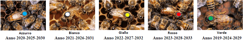 Infatti nelle mie regine per la produzione di miele non uso colori. Tengo un registro ed una puntina sull’arnia per ricordarmi l’anno di nascita.