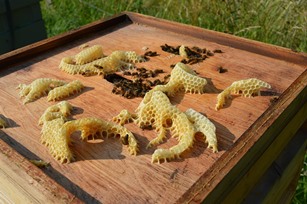 - pulizia da parte delle api: è possibile, seppur non proprio consigliabile far pulire gli opercoli dalle stesse, utilizzando solo poche famiglie per non rischiare di diffondere eventuali malattie ancora allo stadio latente, con le precauzioni necessarie a non scatenare un saccheggio generale;