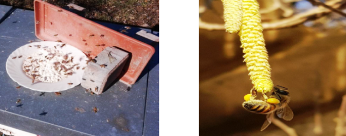 La nutrizione proteica con candito può venir integrata con farine vegetali bio (farina di castagne) su un piattino al riparo da umidità e venti freddi; viene avidamente raccolta dalle api; verrà abbandonata quando inizia la fioritura di nocciolo, salice e ontano. Il piattino viene ritirato alla sera ad evitare l’umidità notturna e riposizionato l’indomani quando iniziano i voli delle api. Assolutamente da evitare di posizionare il piattino all’interno di un’arnia vuota per non abituare le api al saccheggio.
